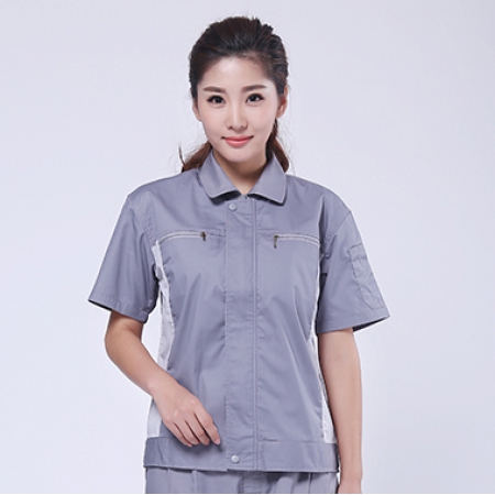 浅灰拼米白夏季工作服AD076