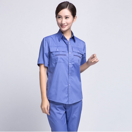 湖蓝色夏季短袖工作服AD10-2