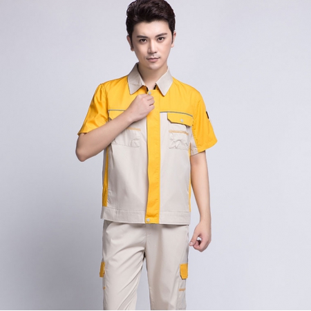 浅绿拼橙黄色工作服AC13-4